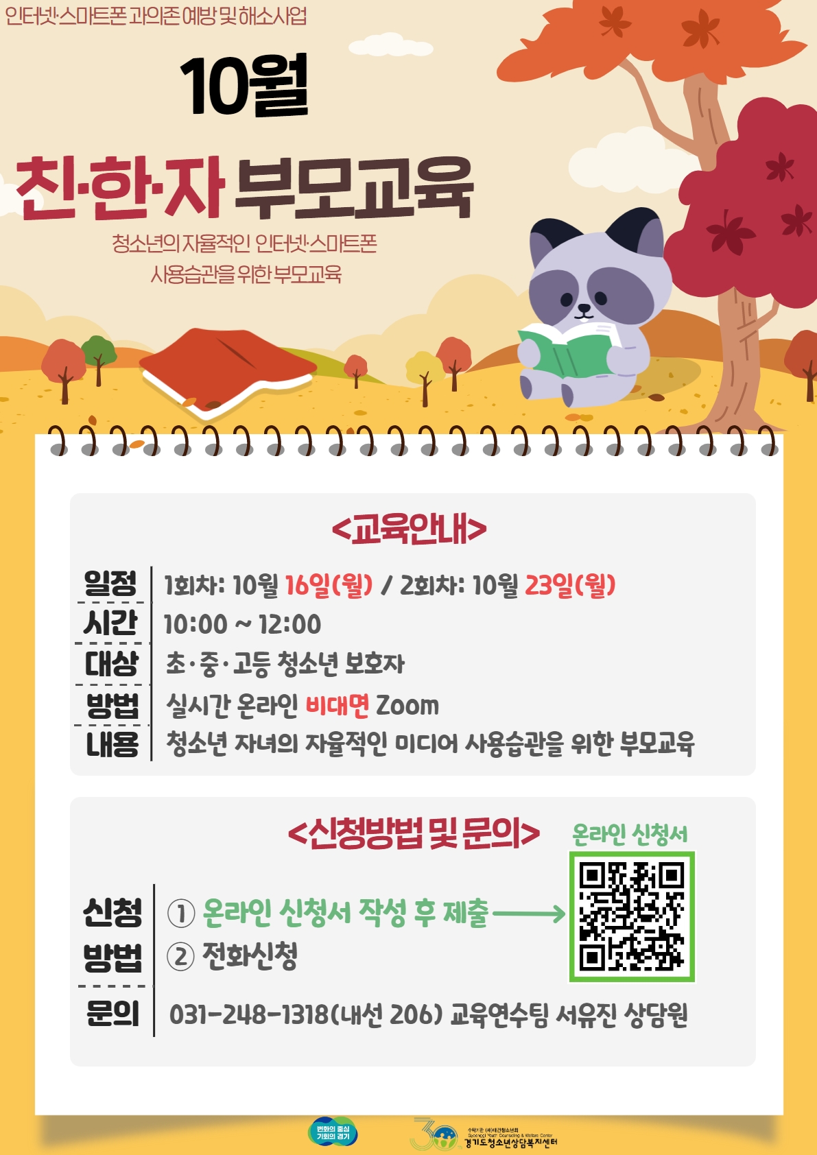 ​10월 친·한·자 부모교육이 개설되었습니다!!!