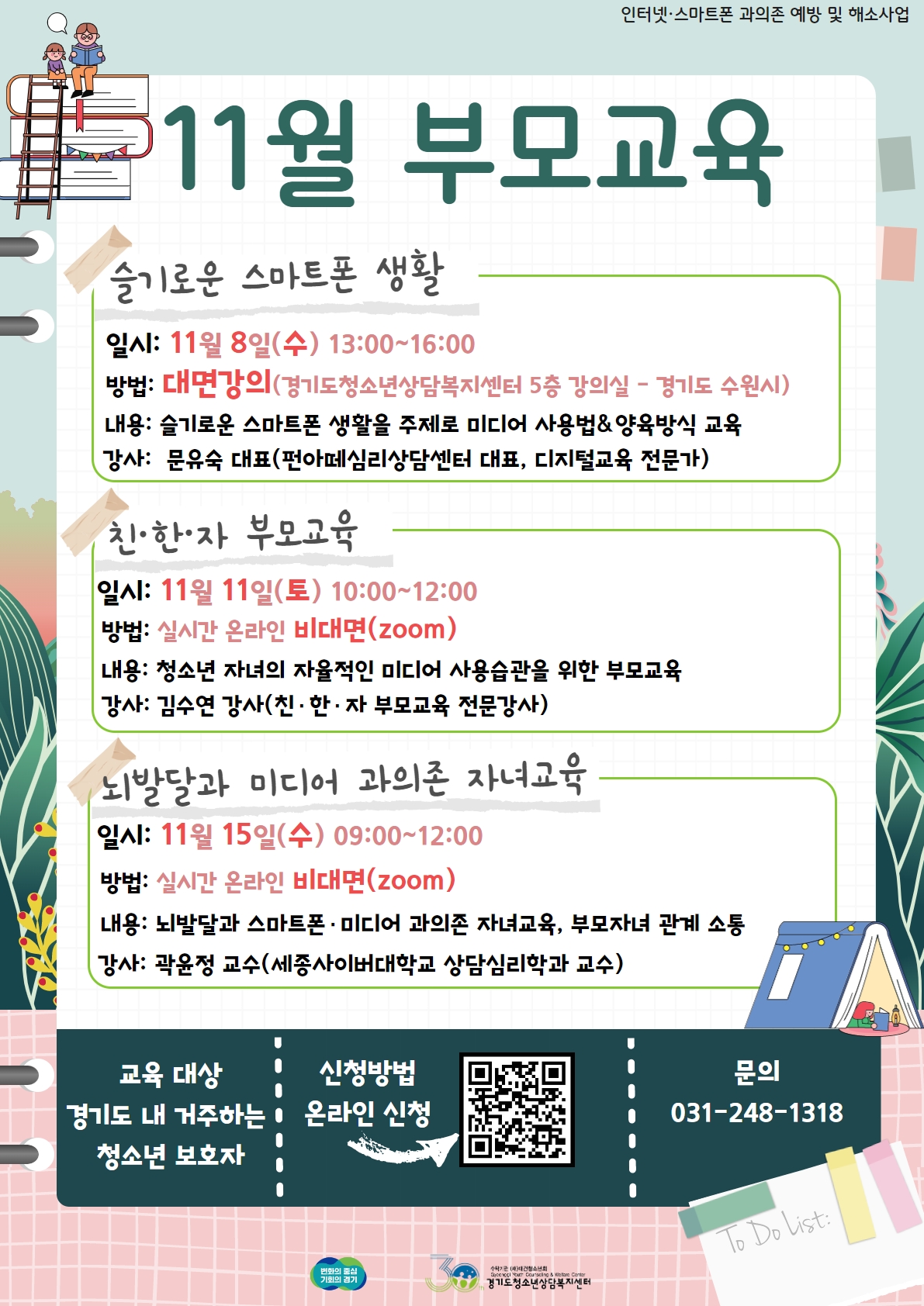 가을이 온것처럼 저희 경기도청소년상담복지센터에서도 11월 부모교육이 개설되었습니다(๑˃́ꇴ˂̀๑)