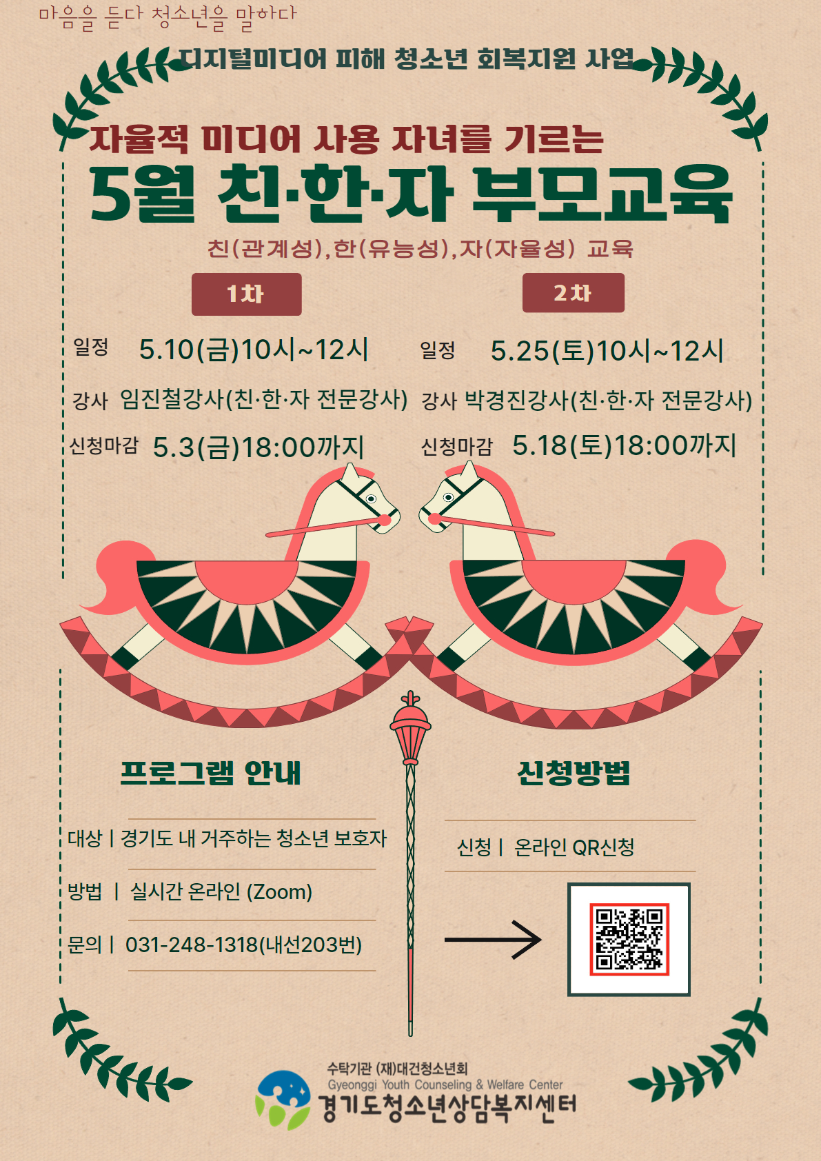 가정의 달 5월을 맞이하여 부모님들에게 부모교육을 안내드립니다.