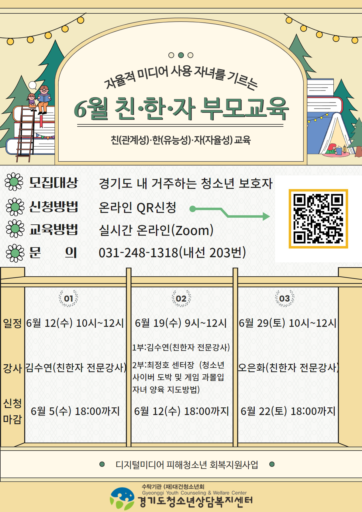 [모집] 2024년 미디어과의존 및 예방 6월 친·한·자 부모교육 안내