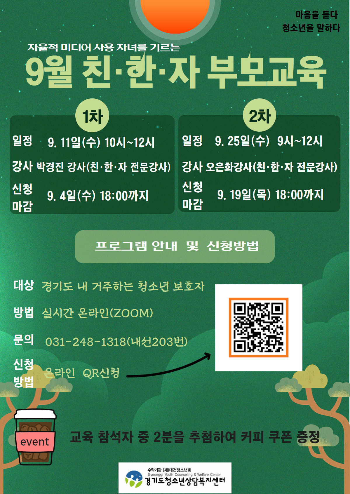 [모집] 2024년 미디어 과의존 및 예방 9월 친·한·자 부모교육 안내