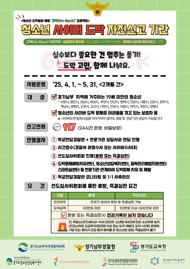 #청소년도박예방 #도박 #청소년 #사이버도박 #사이버도박신고 #117 #비밀보장 #청소년상담복지센터 #경기남부경찰청 #자진신고기간 #도박고민상담 #청소년1388