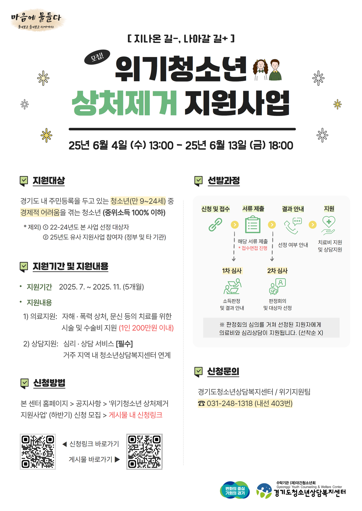 2025년도 <위기청소년 상처제거 지원사업> 하반기 신청 모집을 시작합니다! ![]()