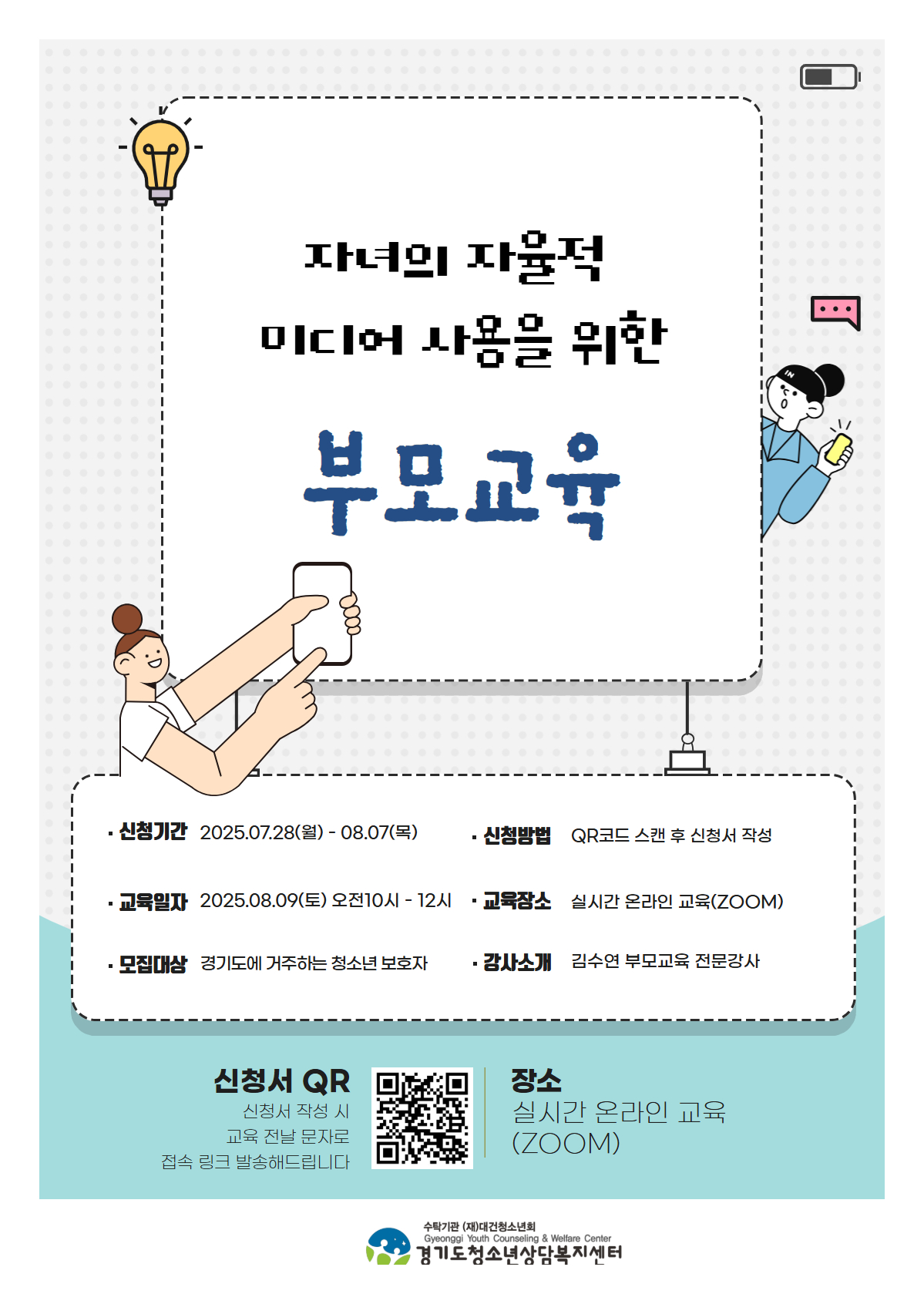 [모집] 2025년 미디어 과의존 및 사이버 도박 문제 예방 8월 부모교육 안내